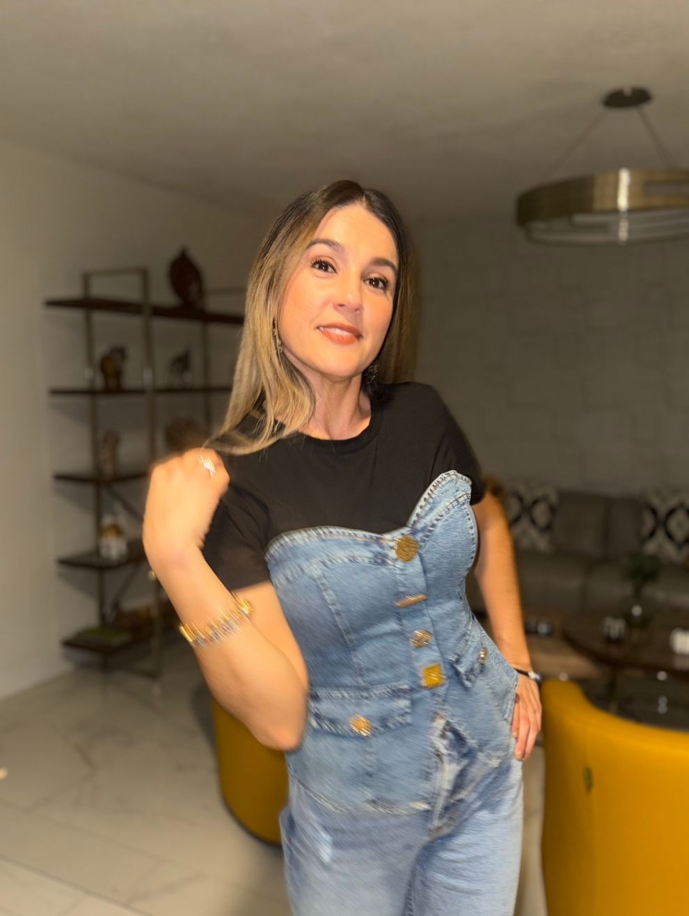 Camisa tipo corset en mezclilla con botones dorados decorativos y estructura entallada que realza la silueta.