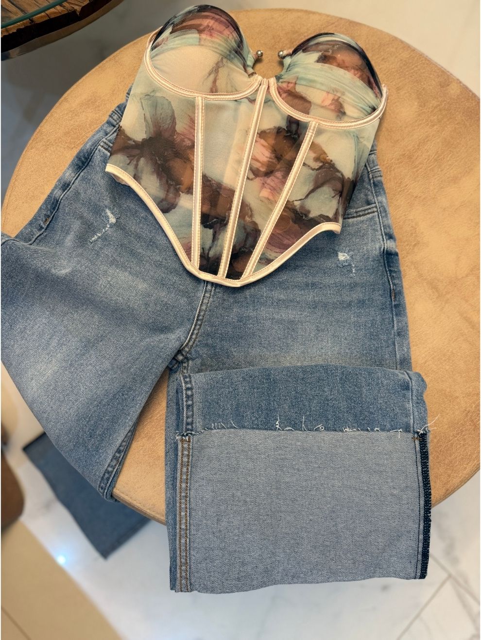 Corset con estructura definida, varillas que realza el busto y define la cintura. Diseño de malla traslucida para un toque femenino y Chic